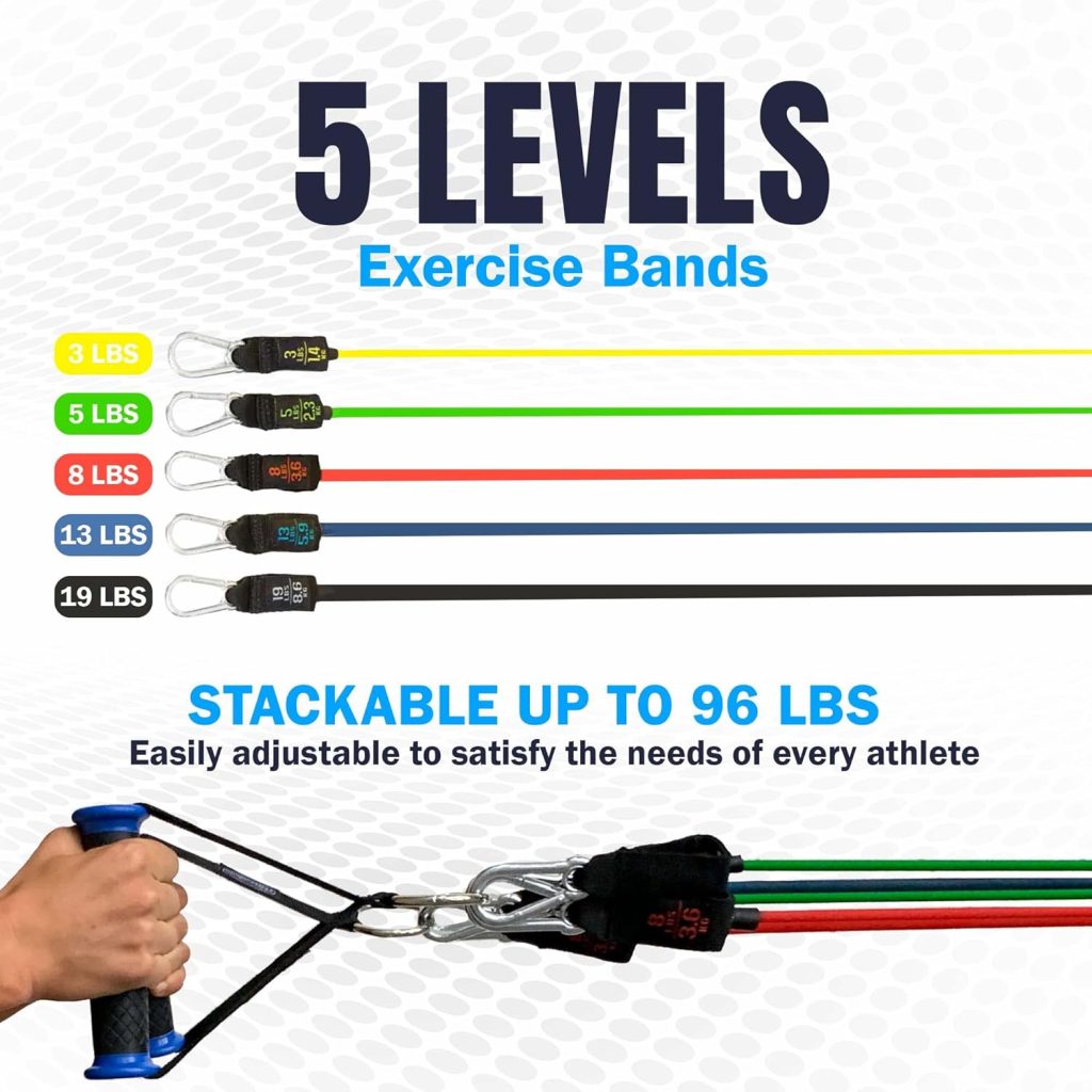 The MAX XT Resistance bands set by Bodylastics are some of the best and highest quality workout bands you can get. They provide up to 156lbs of resistance, are easy to use and come with an anti-snap mechanism.